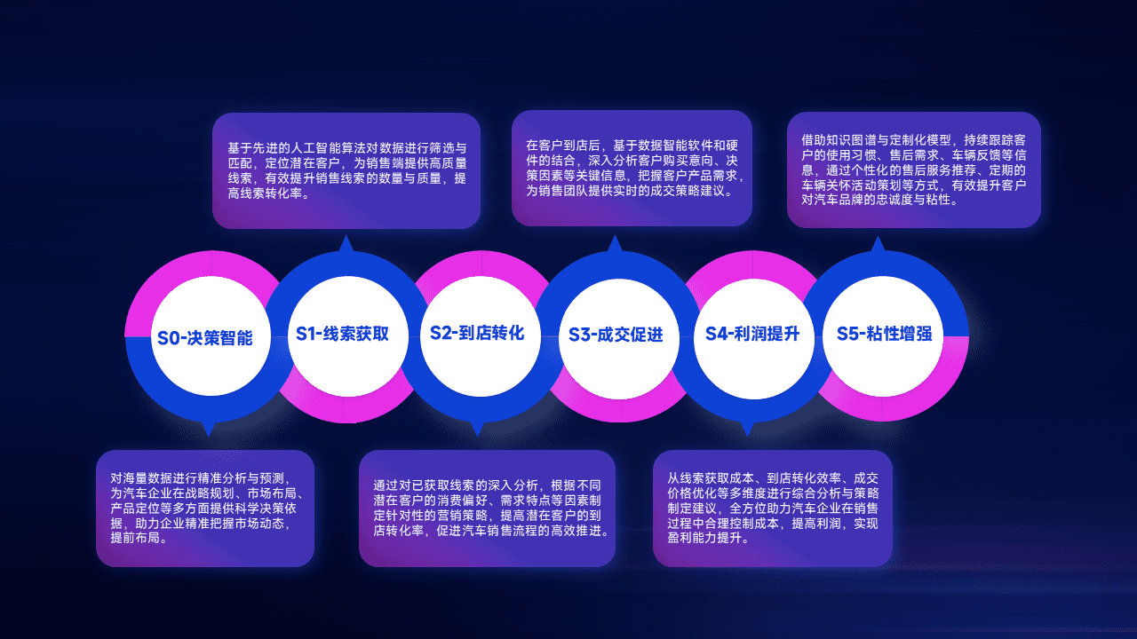 通过拓宽潜在客户来源、、优化线索分配并提高到店转化率,,以增强销售效率。。。同时,,,利用线索数据不断优化分析模型,,有效提升转化率,,,,扩大营销影响力。。